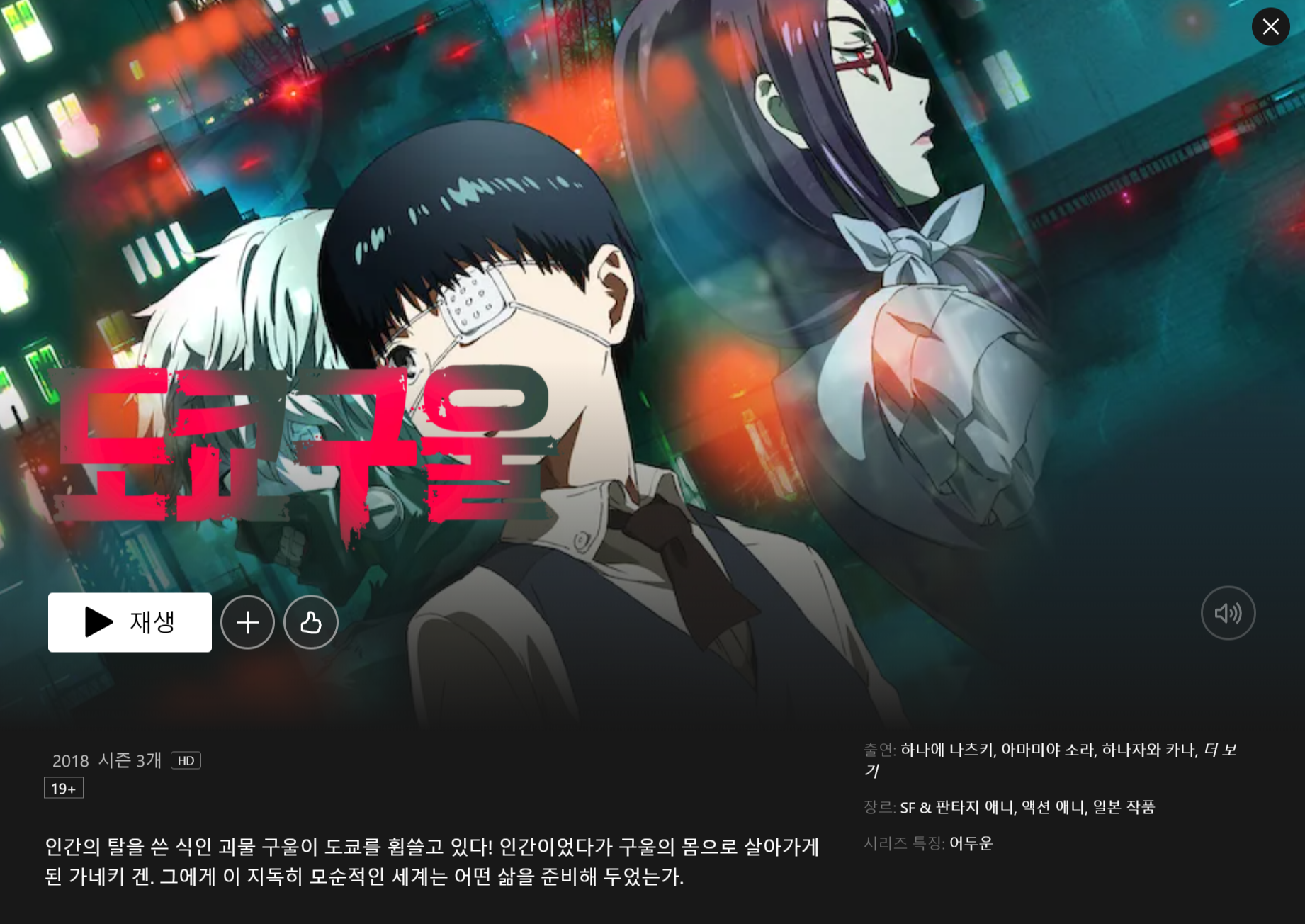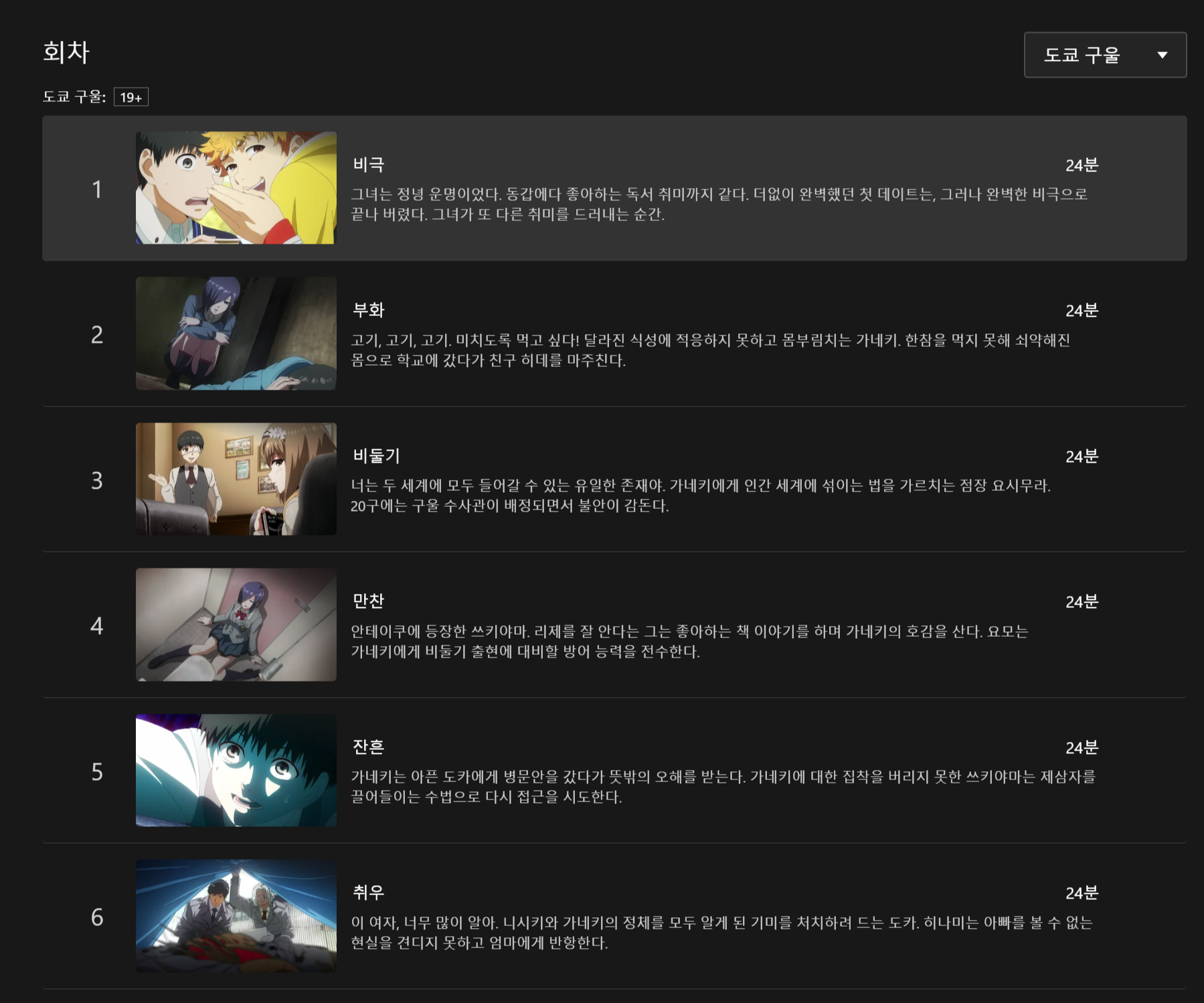 줄거리: 인간과 구울(인간을 먹는 존재)이 공존하는 세계에서 벌어지는 이야기입니다.