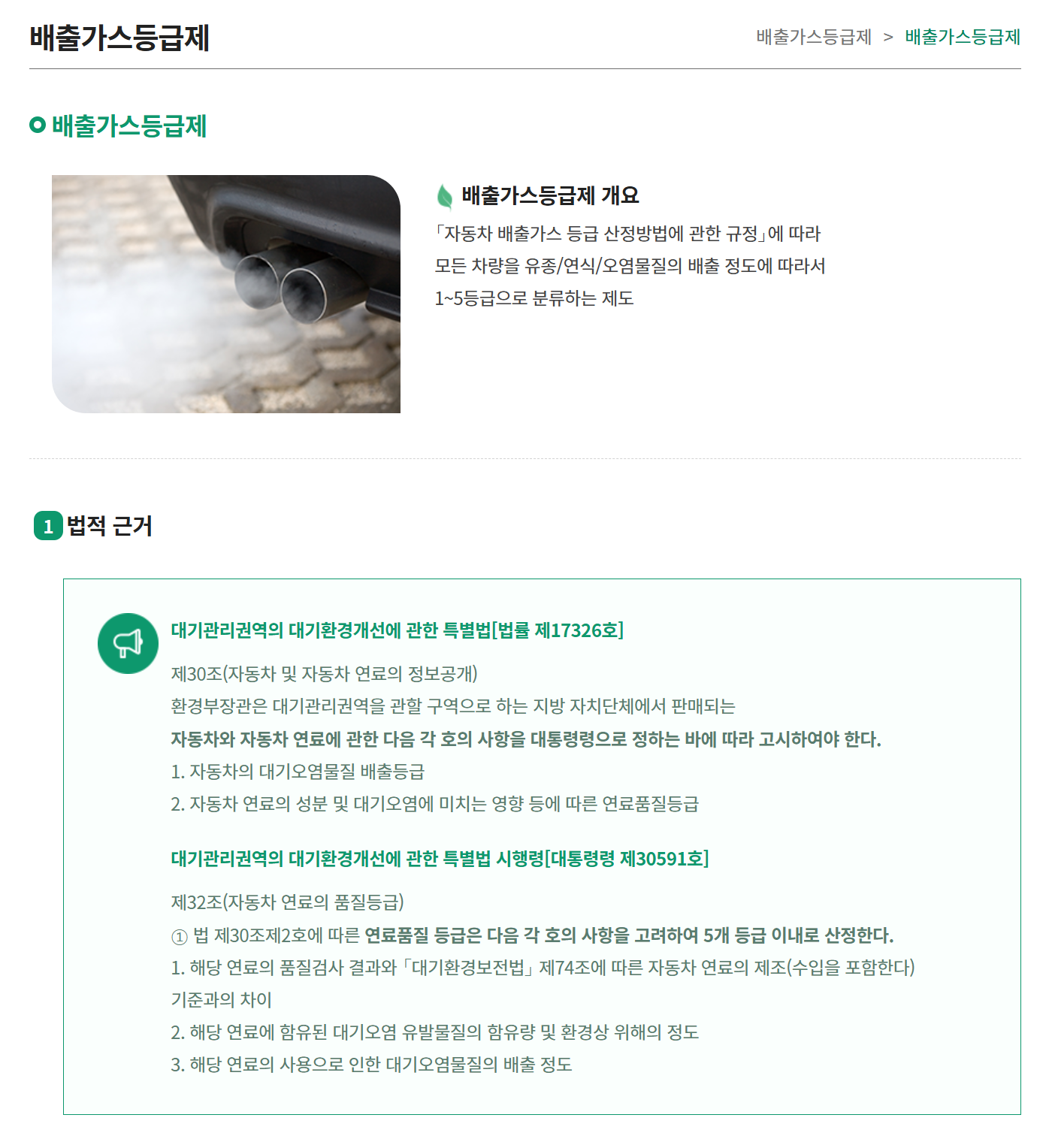A4. 환경부의 배출가스 등급제 사이트에서 차량번호를 입력하면 배출가스 등급을 조회할 수 있어요.