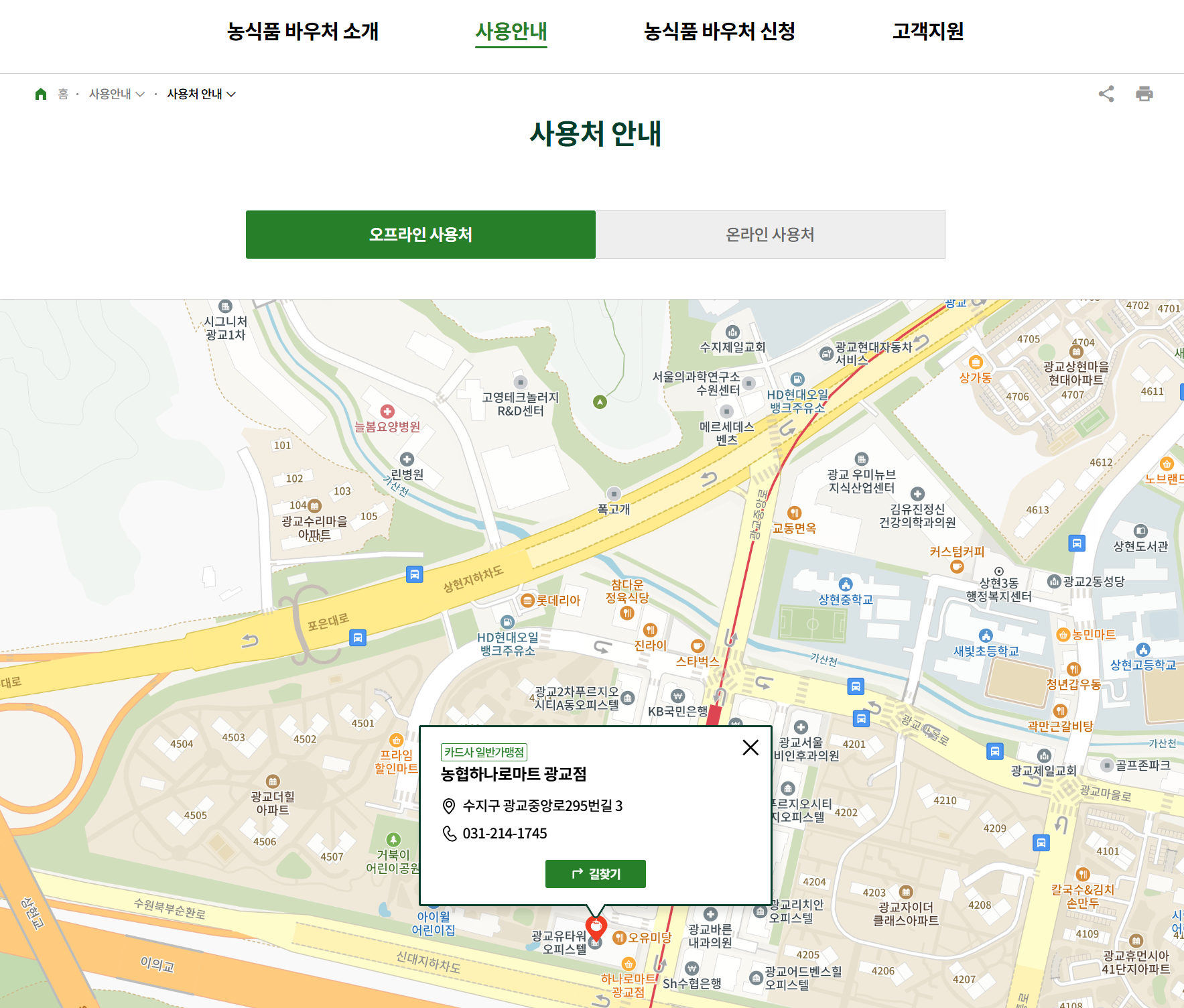 농식품 바우처는 지정된 오프라인 및 온라인 매장에서 사용할 수 있습니다.